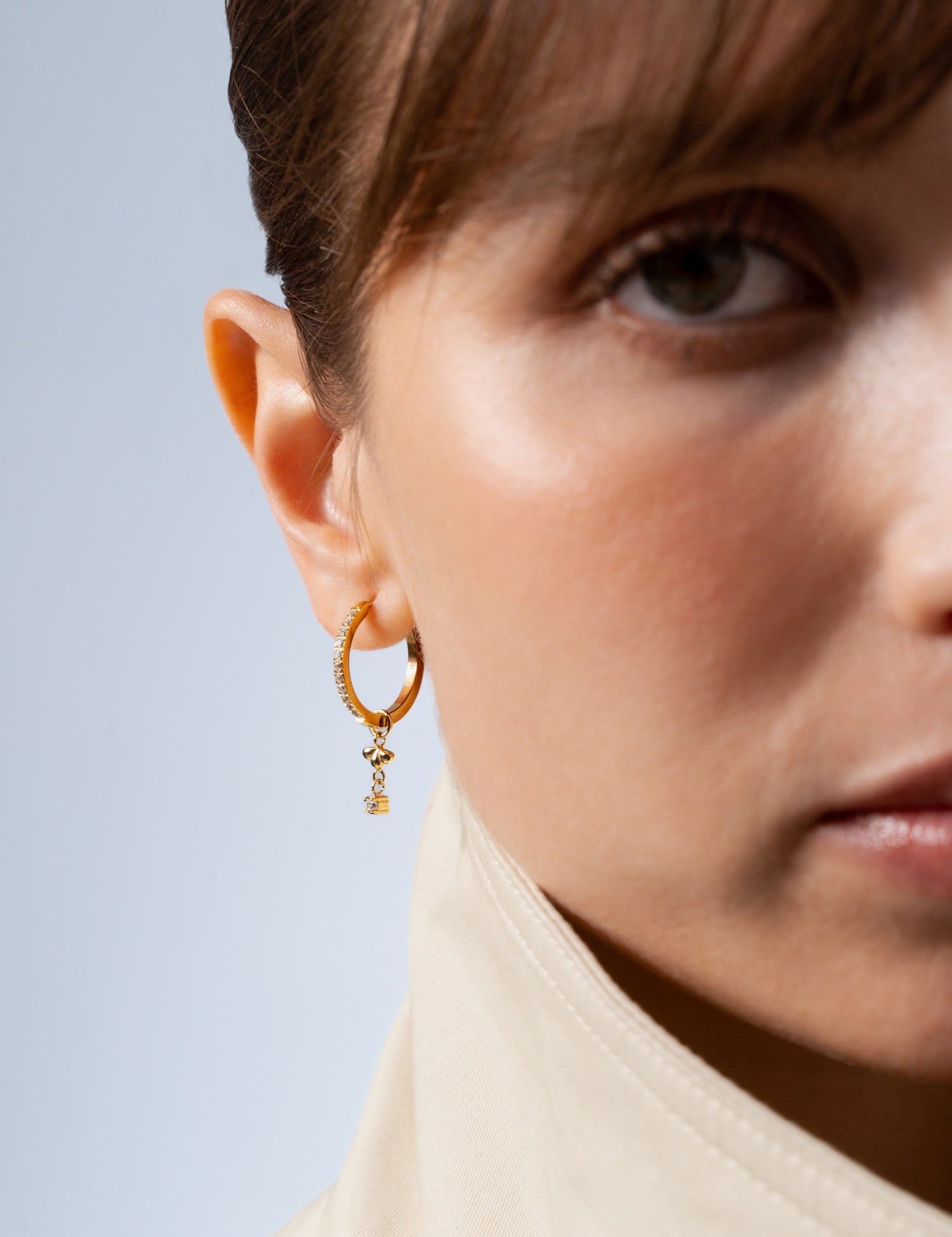 This collection of hoop charms is designed to fit the Bella or Claire earrings. If you have more than one piercing, you can mix and match various earrings of different sizes with different hoop charms, or wear just one to add a touch of elegance and fun to your look.